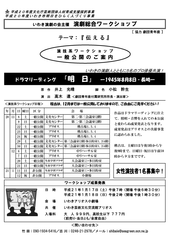 いわきの演劇人と共に5名のプロ俳優の共演のもと、「明日」 -1945年8月8日・長崎-